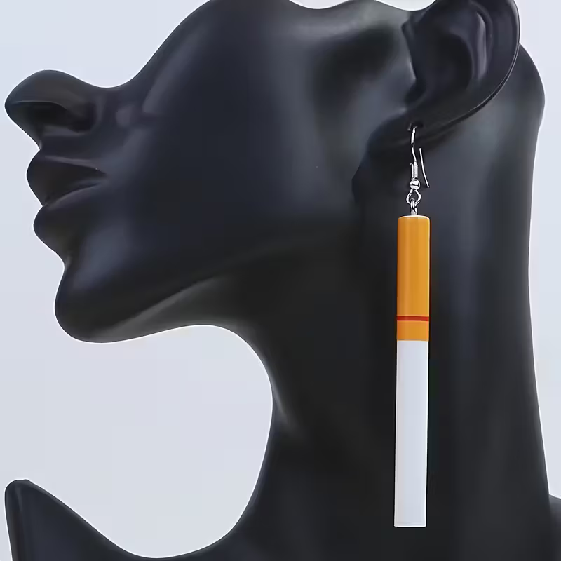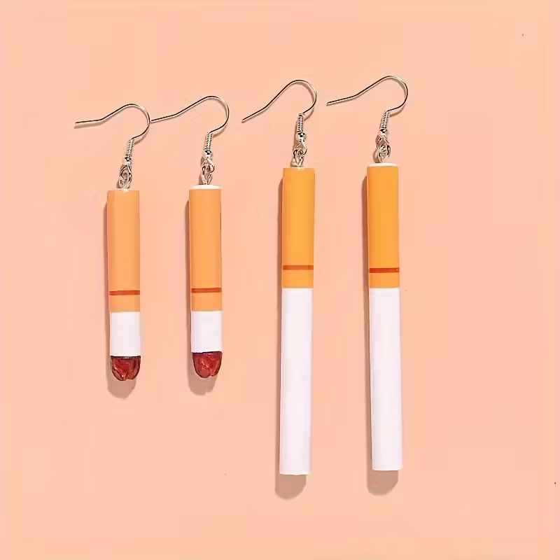 Whimsical Cigarette Butt Earrings, Realistic 3D Cigarette Stem Dangle Earrings,