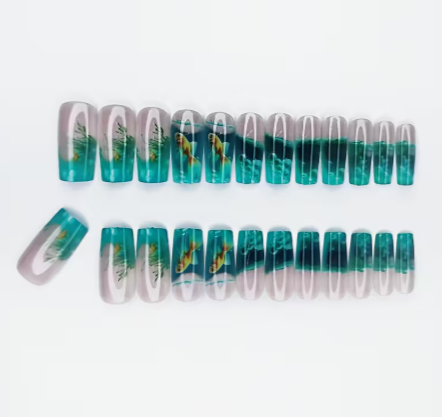 Detachable Aquarium Series Fish Pattern Nail Art Set - 24pcs/ Press-Ons