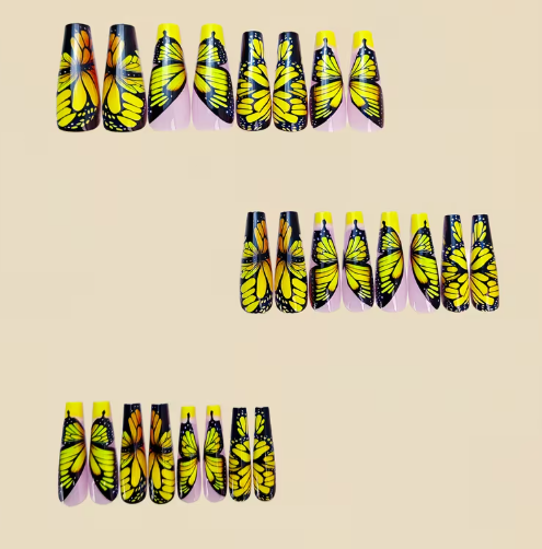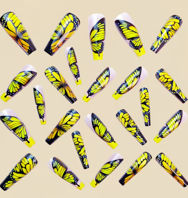 Long Ballet-Style Nails with Butterfly Patterns, "LuxeLash Nails"