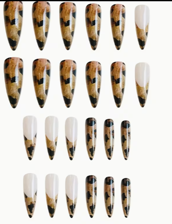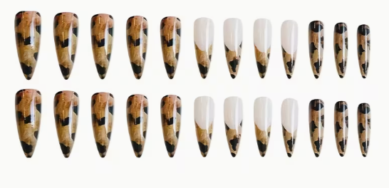 Natural Style with 24 Long Amber Tortoiseshell Leopard Print Stiletto Color-Blocked Nails,