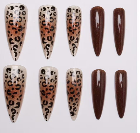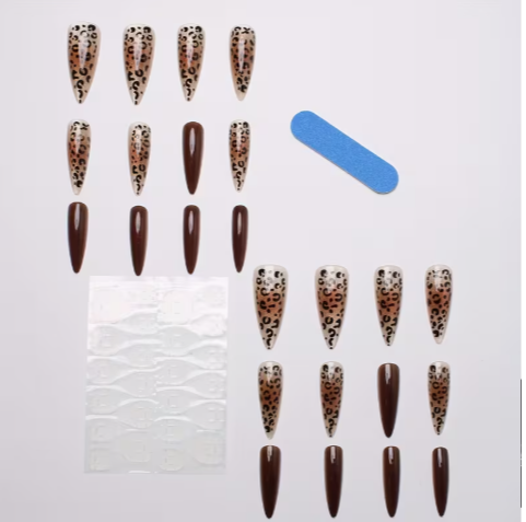 Print & Brown Gradient Glossy Fake Nails Set for hands/feet - Full Set Nail Art