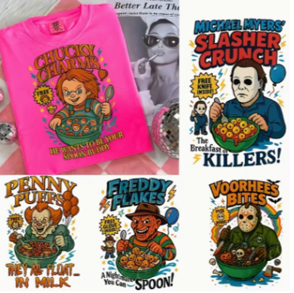 Humorous Horror Character Killer Collection: horror (killer cereal) choose from 5 and in black or white