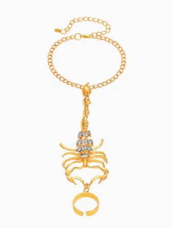 Scorpion Finger Ring Bracelet, Zinc Alloy with Rhinestone Embellishments, Single Piece Metal Hand Jewelry