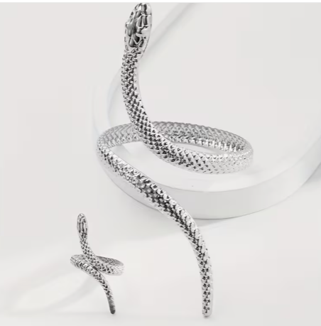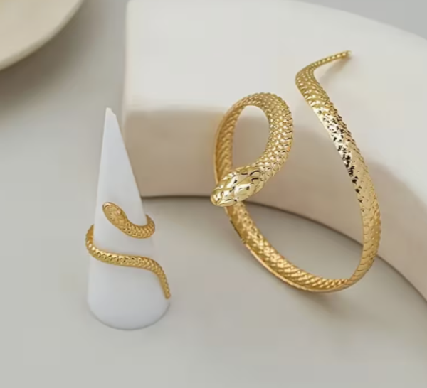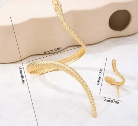 2pc Bracelet and Ring Set, Creative Twisted Cuff Bangle